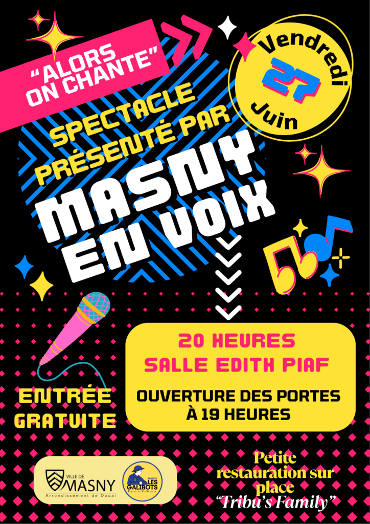L’atelier de chant intergénérationnel « Masny en Voix » vous invite à son spectacle de fin d’année qui se déroulera salle Edith Piaf le samedi 27 juin 2025 à 20h00.