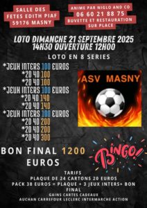 L’association Masny Plus vous invite à une soirée dansante spéciale Halloween, placée sous le signe de la convivialité, de la musique et de la fête. Déguisements bienvenus pour une ambiance encore plus réussie ! Au menu : Soupe de potiron Couscous royal Fromage Gâteau Café Tarifs : 28 € par adulte 18 € pour les …