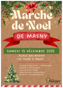 La Ville de Masny prépare son traditionnel Marché de Noël, un moment festif et chaleureux très attendu chaque année par les habitants. À cette occasion, artisans, créateurs, producteurs locaux et associations sont invités à participer pour faire découvrir leurs produits et créations. INFORMATIONS PRATIQUES Date de l’événement : samedi 13 décembre 2025 Lieu : place …