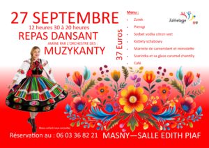 L’association Masny Plus vous invite à une soirée dansante spéciale Halloween, placée sous le signe de la convivialité, de la musique et de la fête. Déguisements bienvenus pour une ambiance encore plus réussie ! Au menu : Soupe de potiron Couscous royal Fromage Gâteau Café Tarifs : 28 € par adulte 18 € pour les …