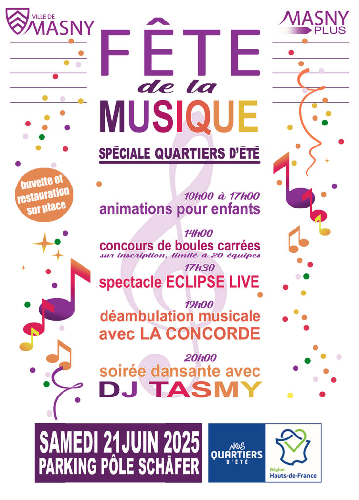 De 10h00 à 17h00, l’association « Masny Plus » proposera des animations pour les enfants : jeux, ateliers et surprises les attendent pour bien démarrer l’été !