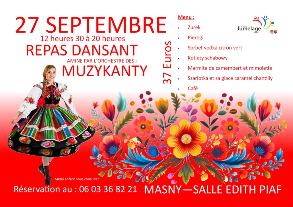 Le comité de jumelage Masny Lubsko vous propose un repas dansant animé par l’orchestre MUZYKANTI le 27 septembre salle Edith Piaf.