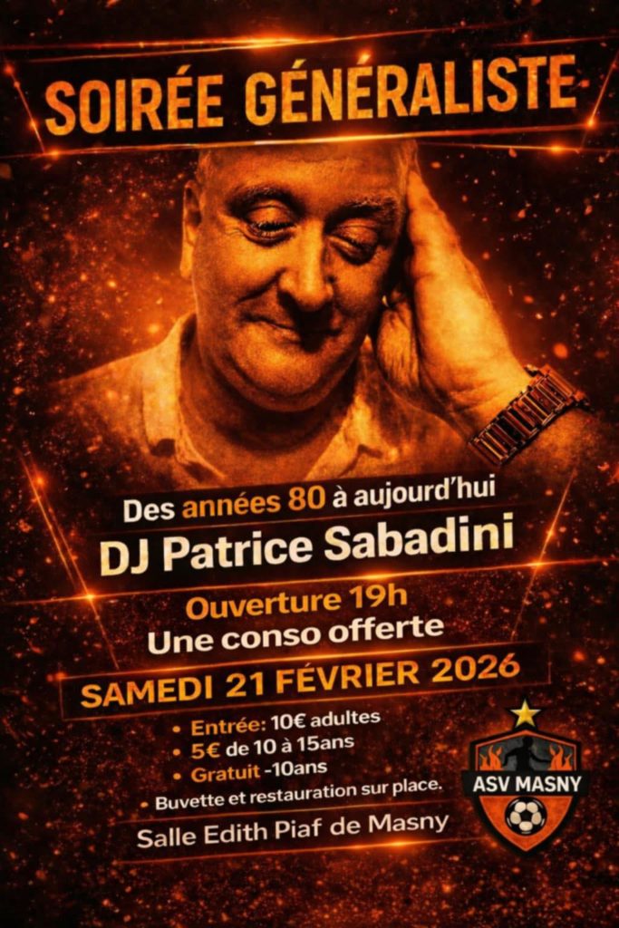 L’AS Vétérans vous invite à leur soirée dansante le samedi 21 février 2026, à partir de 19h00,salle Edith PIAF.